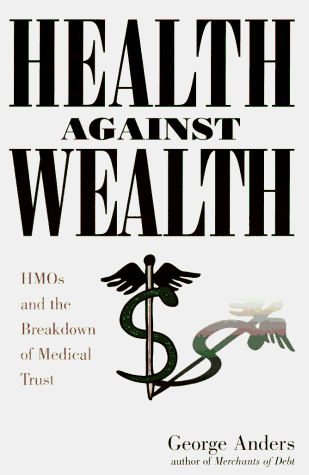 The HMO system is often praised for cutting runaway costs. It is supposed to act as a powerful market force to stop greedy doctors and hospitals from treating patients like pi-atas, to be cut open for profit. Health Against Wealth reveals that when you are confronting cancer, heart disease, or psychiatric illness, when you face a medical emergency or your child requires complex pediatric surgery, all those cost-saving rules and artful ways of keeping doctors frugal can turn against you. Wall Street Journal reporter George Anders explains why " managed care " is so appealing to employers and insurers and how HMO bureaucrats can thwart necessary, even life-saving treatment under the guise of cost efficiency. Health Against Wealth takes an unf